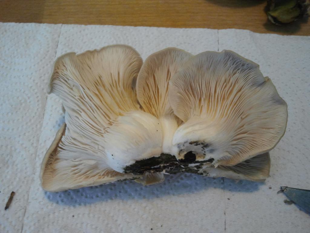 Beim ersten Pilz gehe ich stark davon aus, dass es sich um den Austernseitling handelt. Allerdings passt das Wetter hier (noch sehr warm, auch nachts nicht übertrieben kalt) nicht ganz. Temperaturen um den Gefrierpunkt gab es noch nicht. Zudem handelt es sich für mich um einen Erstfund (außerhalb des Supermarktes :P), weshalb ich noch einigermaßen unsicher bin. Anbei die Bilder: