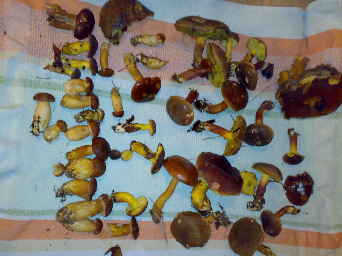 Heutiger Pilzfund im Deister: einiges and Rotfußröhrlingen und Ziegenlippen, ein Hexenröhrling, ein paar Maronen, dazu ein paar kleine Steinpilze.