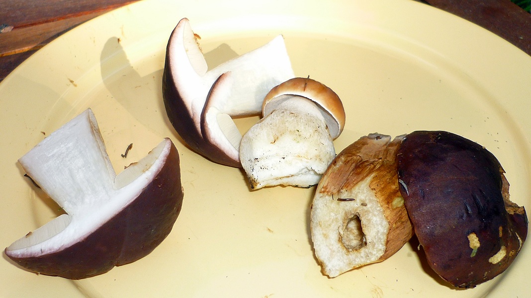 Bild 4 - Steinpilz oder MaroneDer kleine helle ist ein Steinpilz (B. edulis). Das rechts könnte eine Marone (X./B. badius) sein.