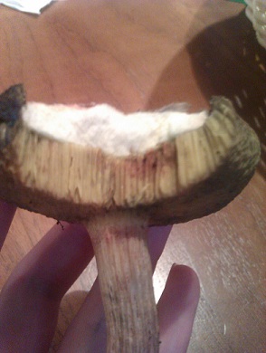 - Verfärbung des Fruchtkörpers im Schnitt: ja