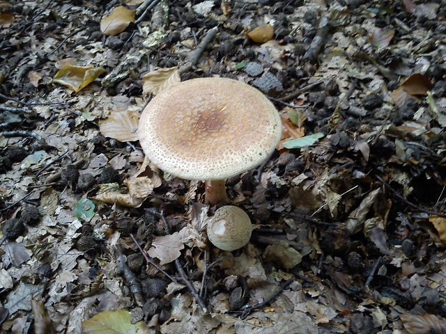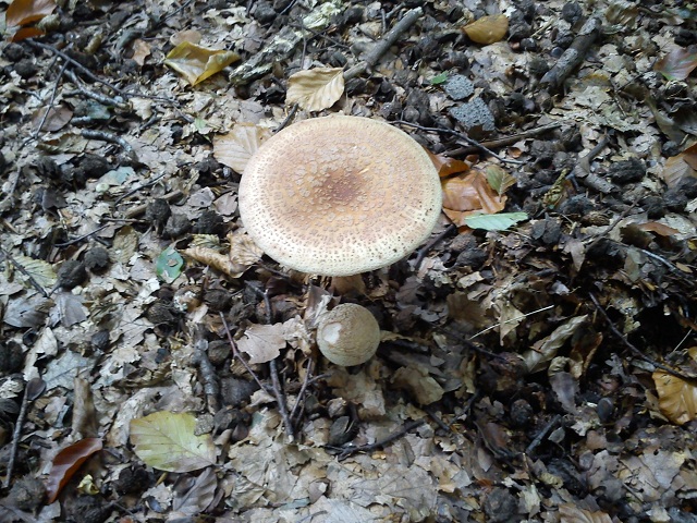 So kann ich nur eine Vermutung anstellen: Perlpilz, Amanita Rubescens.