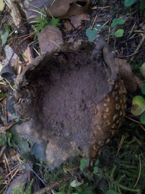 • Auf jeden Fall ein alter Bovist, bzw Stäubling, Tippe auf Kartovfel-Bovist, kann ich aber anhand des Alters und fehlenden Größenangaben so nicht mehr sagen