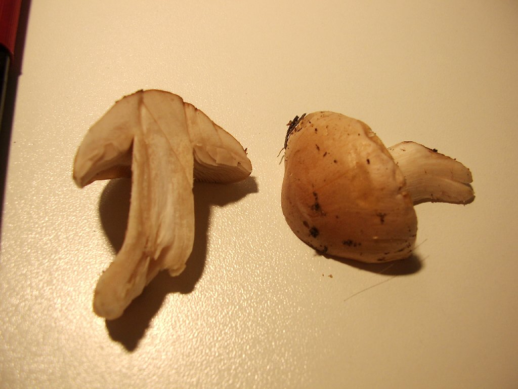 Die Pilze haben eine recht unregelmäßige Form. Große 5-max10 cm ungefähr. Eine Leckprobe offenbarte einen leicht bitteren Geschmack, aber kein besonderer Geruch.