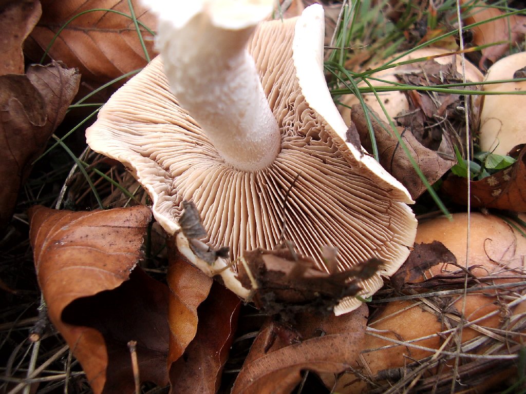 • Der Pilz muss nach Rettich gerochen haben, denn ich denke, dass das ein Fälbling (Hebeloma) ist. Vielleicht H. crustuliniforme. Der ist sehr häufig und wächst nachweislich auch in Hexenringen (obwohl dieses Wachstum kein Merkmal sein sollte).