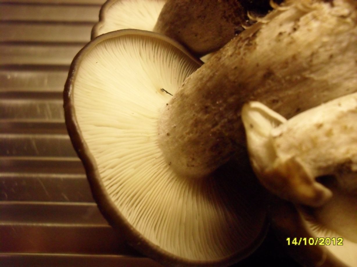 Hutfarbe dunkel Braun,fest. Lamellen weiß cremefarben dicht und untermischt. Stiel elastisch, nicht hohl und weiß, auch das Hutfleisch ist weiß.