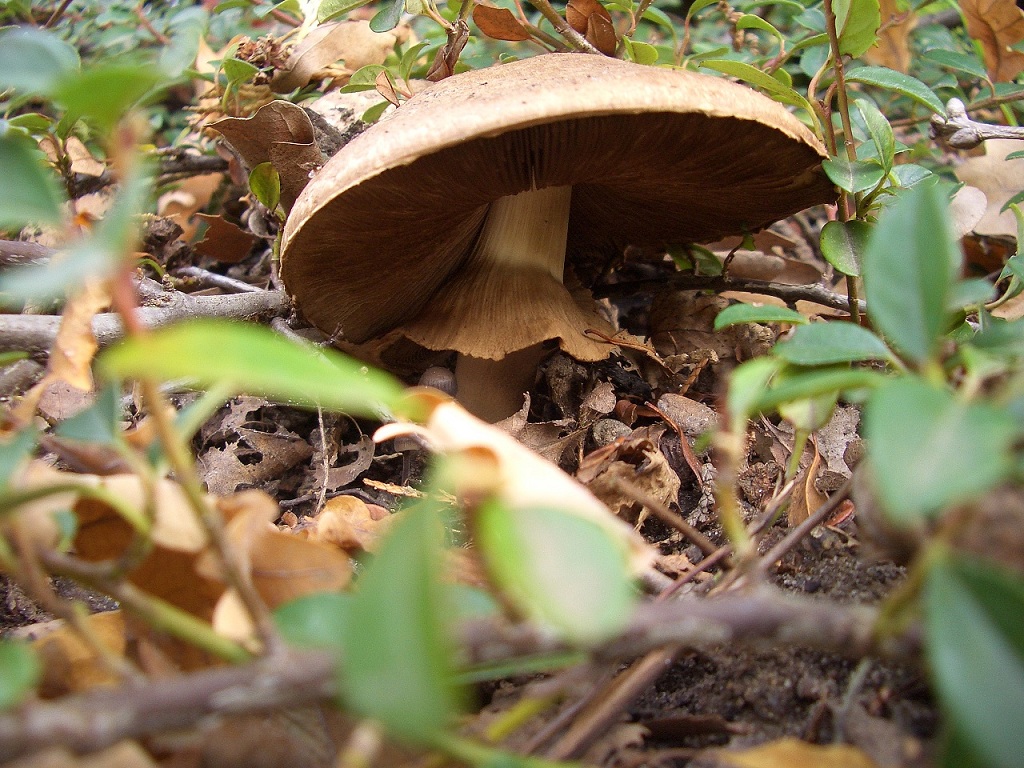 2. Bei diesem Pilz bin ich mir nicht sicher, ob es ein Waldchampi ist. Der Standort ist schattig unter einer Eiche bzw. unter Büschen und Bodendeckern.