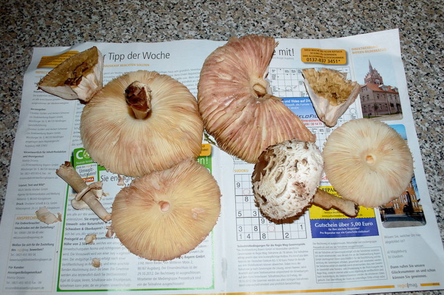 Ich hoffe, den Rest können die Fotos darstellen, ich habe mir Mühe gegeben ;). Im Moment verarbeite ich erstmal die Birkenpilze und lasse die Schirmlinge liegen.