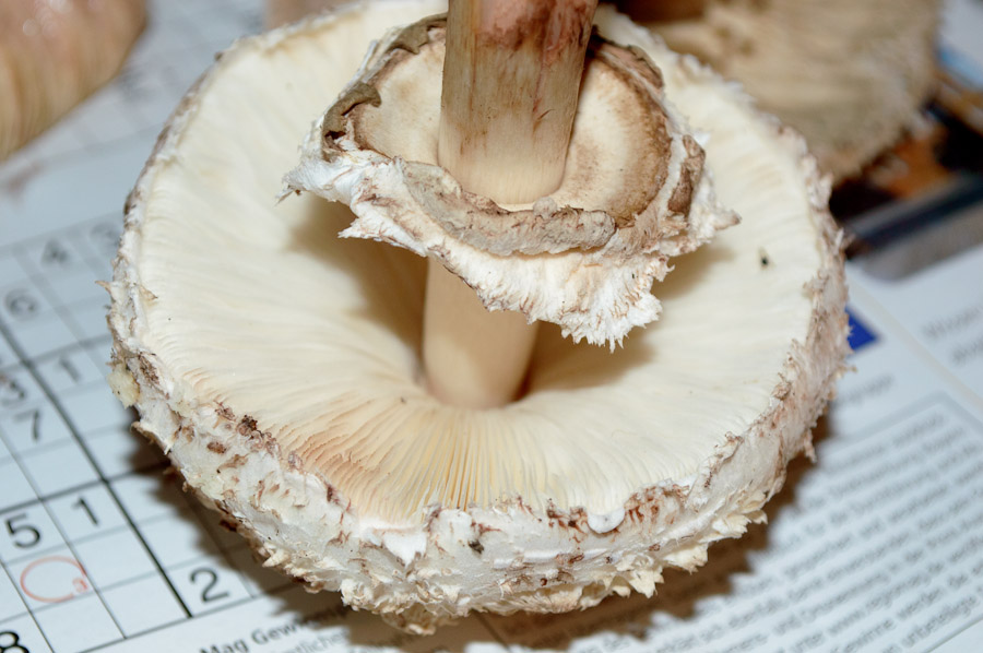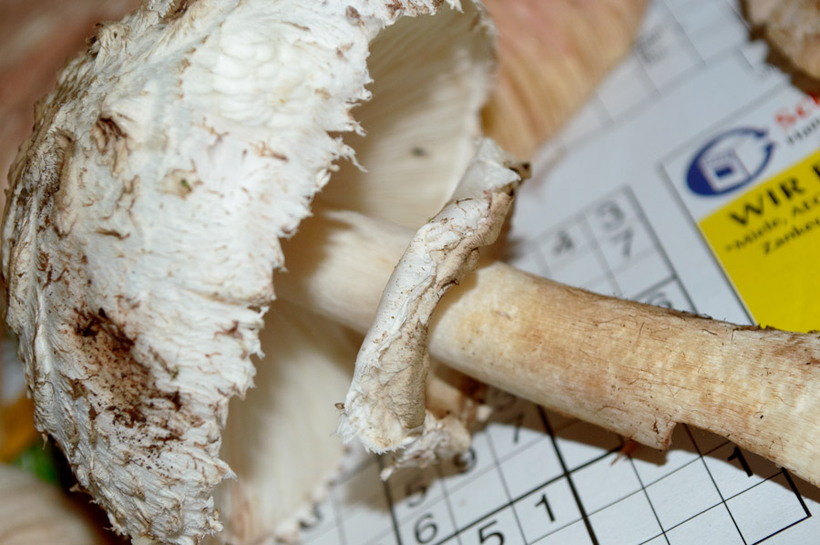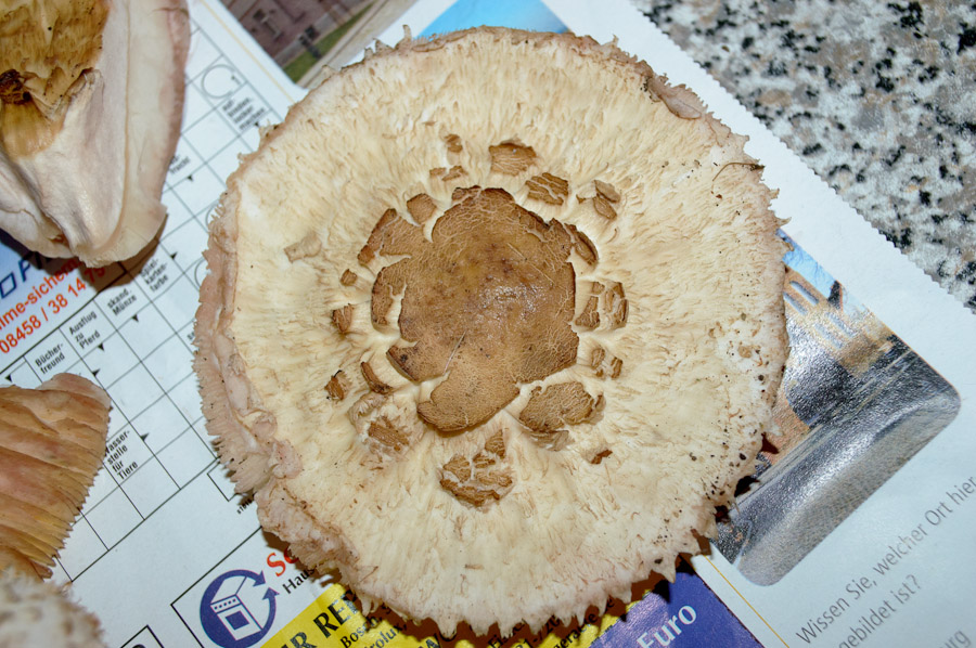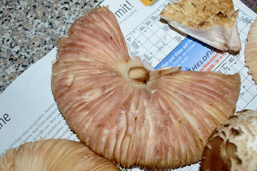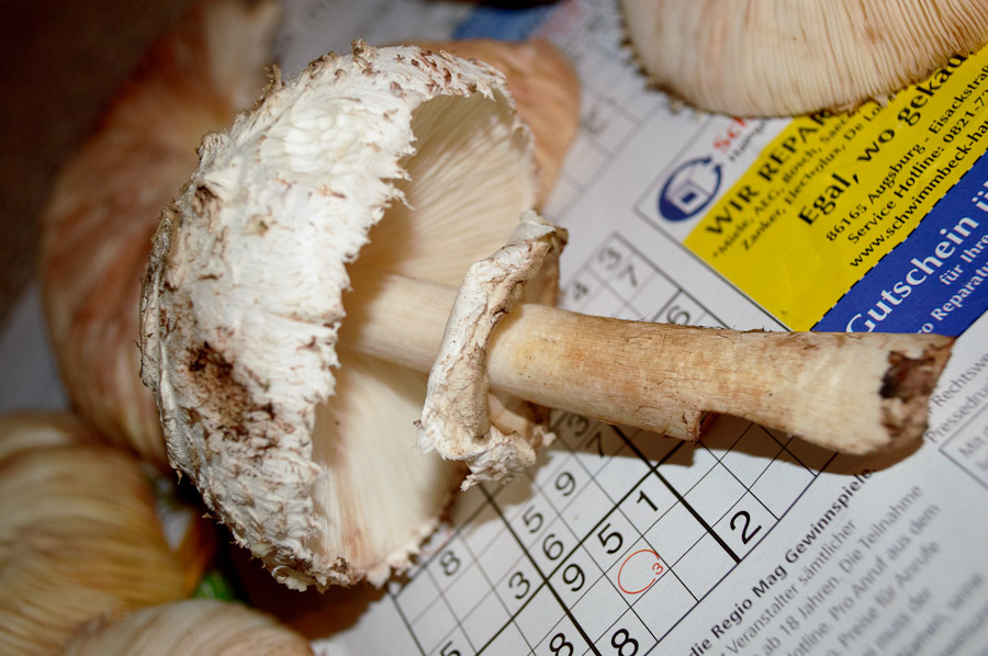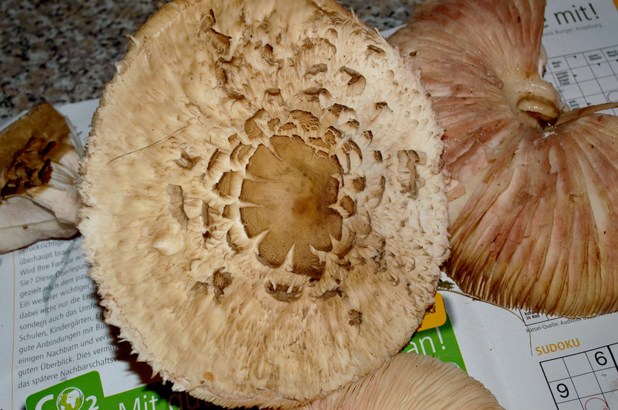 Nach einer Internetrecherche vorab traue ich mich im Moment nicht, letztere zu verarbeiten, da die Gefahr besteht, es könne sich um den Gift-Schirmling handeln, dessen Existenz wiederum von manchen bestritten wird.
