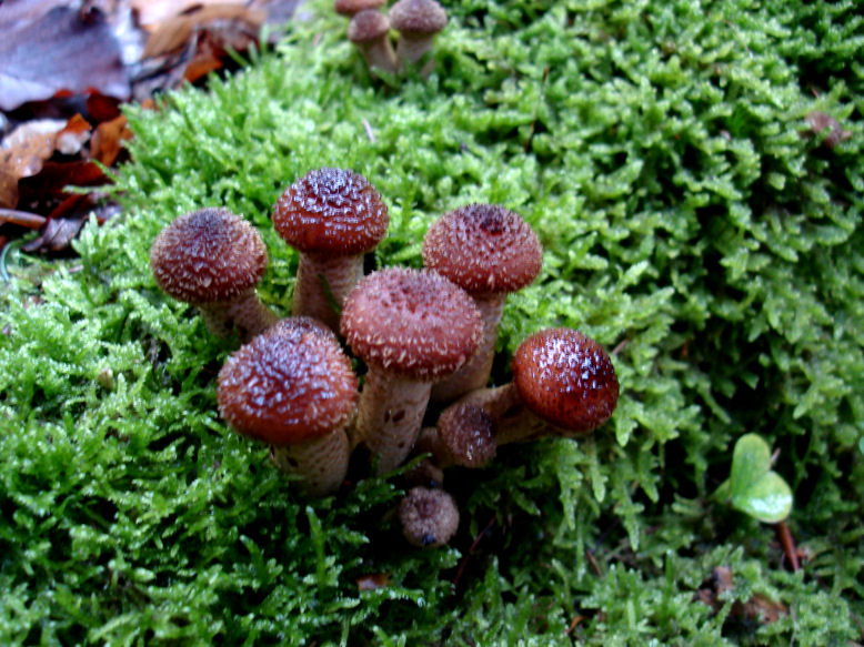 2. Verschiedene Stockschwämmchen-Ansiedlungen ([undefined=undefined]Kuehneromyces mutabilis[/undefined]). Mein Korb könnte voll sein! Hab mich aber nicht getraut.
