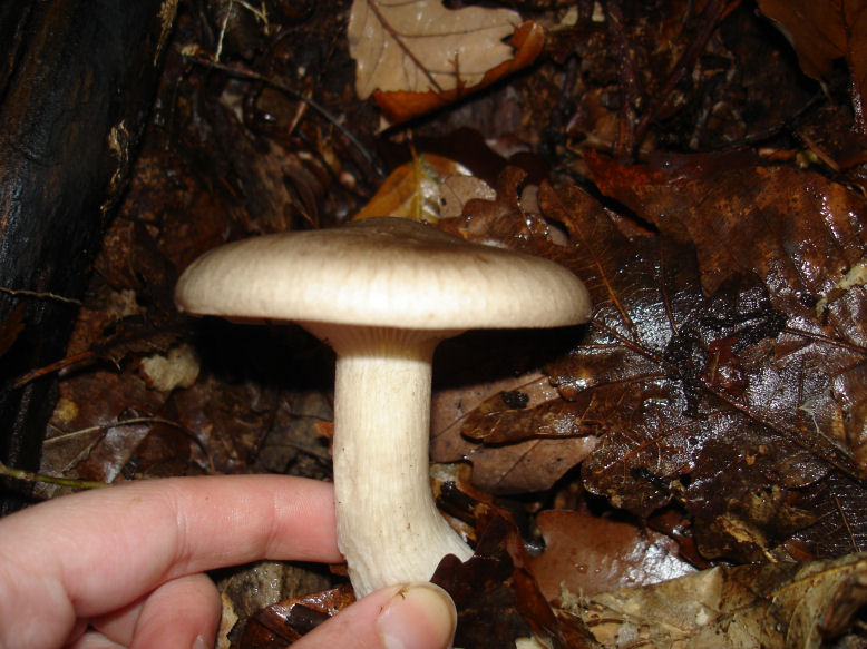 3. Eine Nebelkappe, [undefined=undefined]Clitocybe nebularis[/undefined]? Die gab es massig im Laub- und Mischwald. Geruch auch irgendwie süßlich.