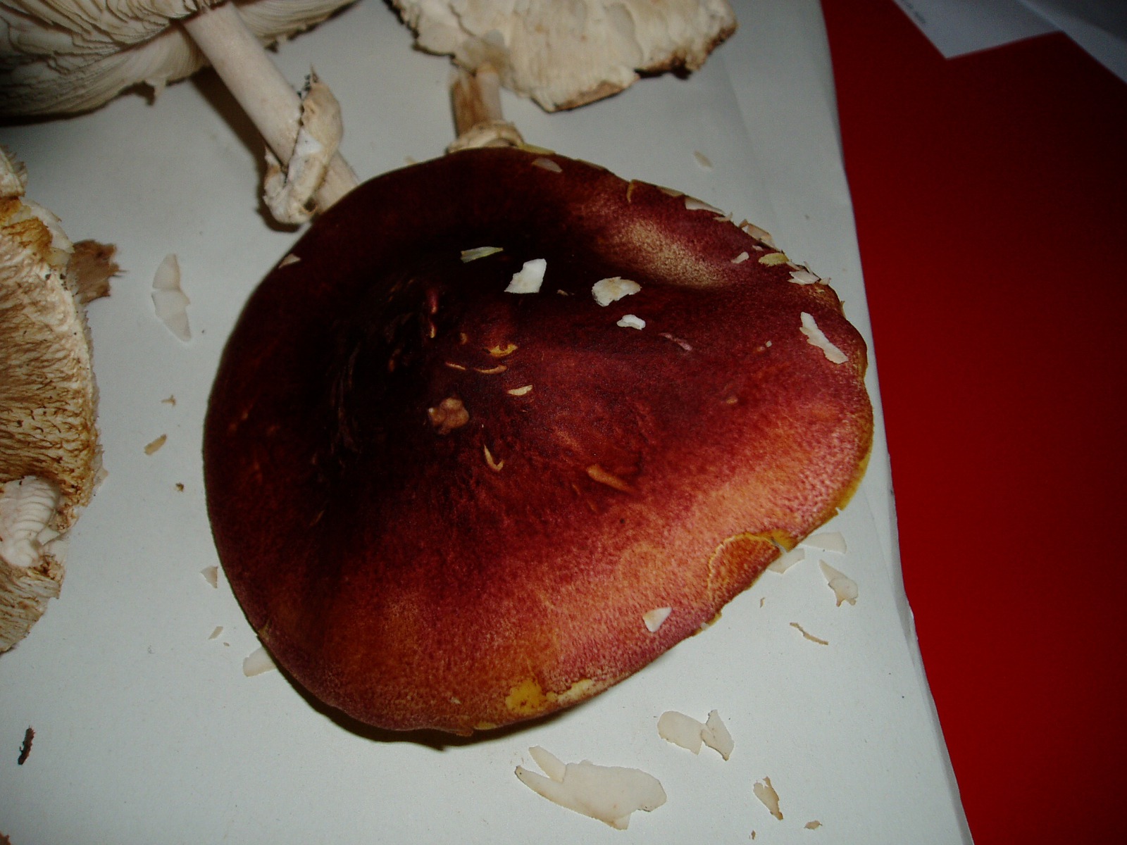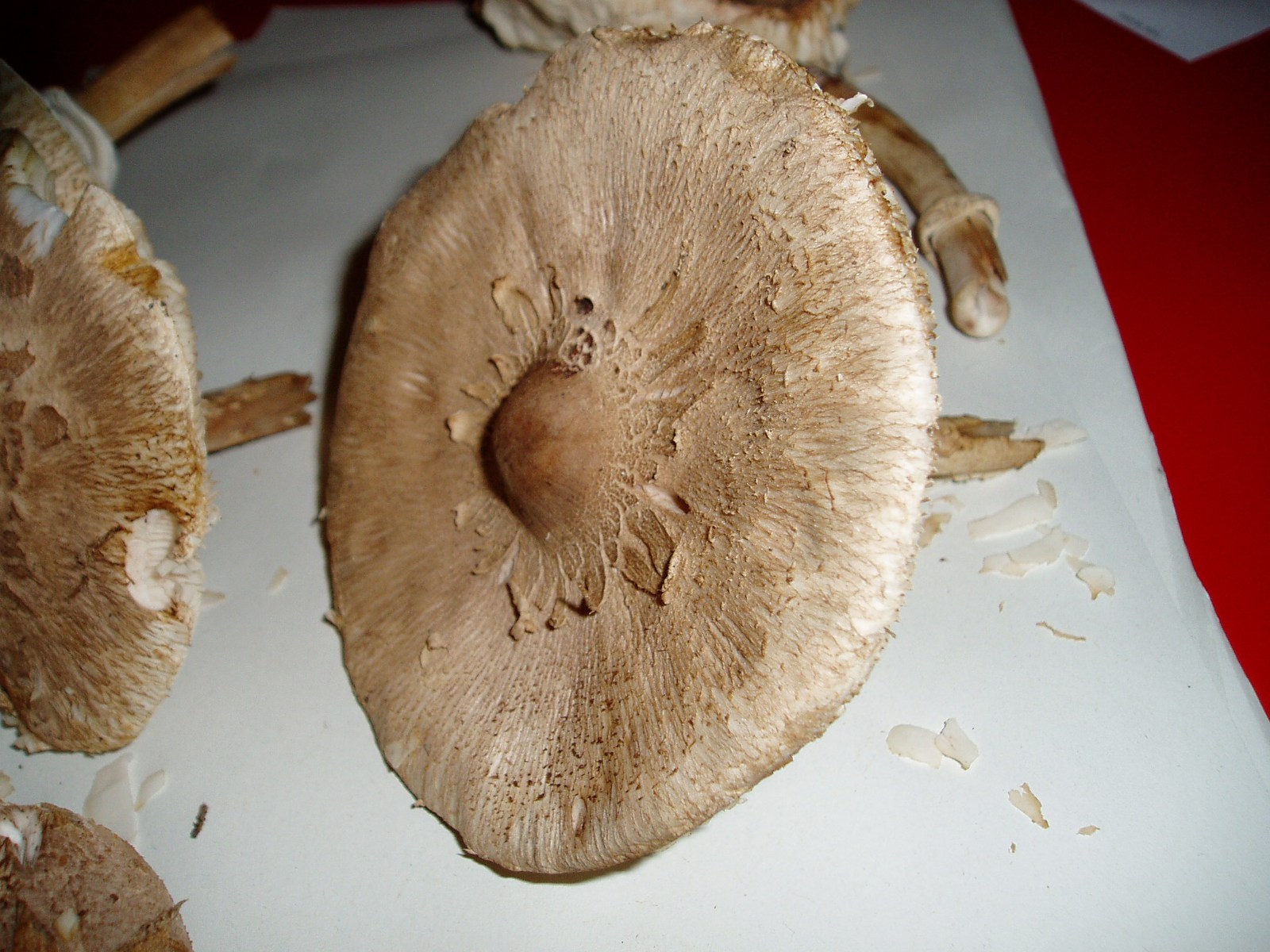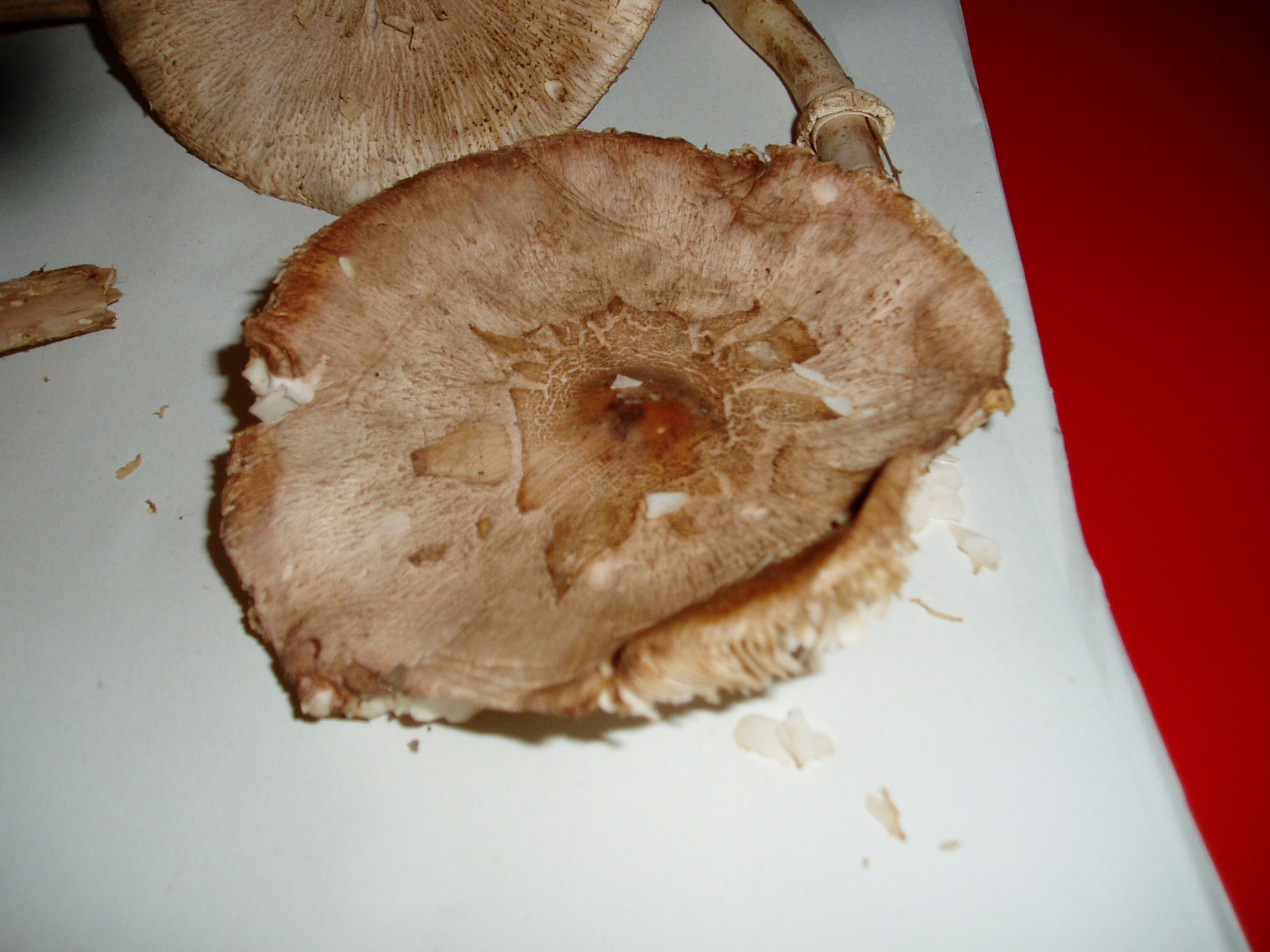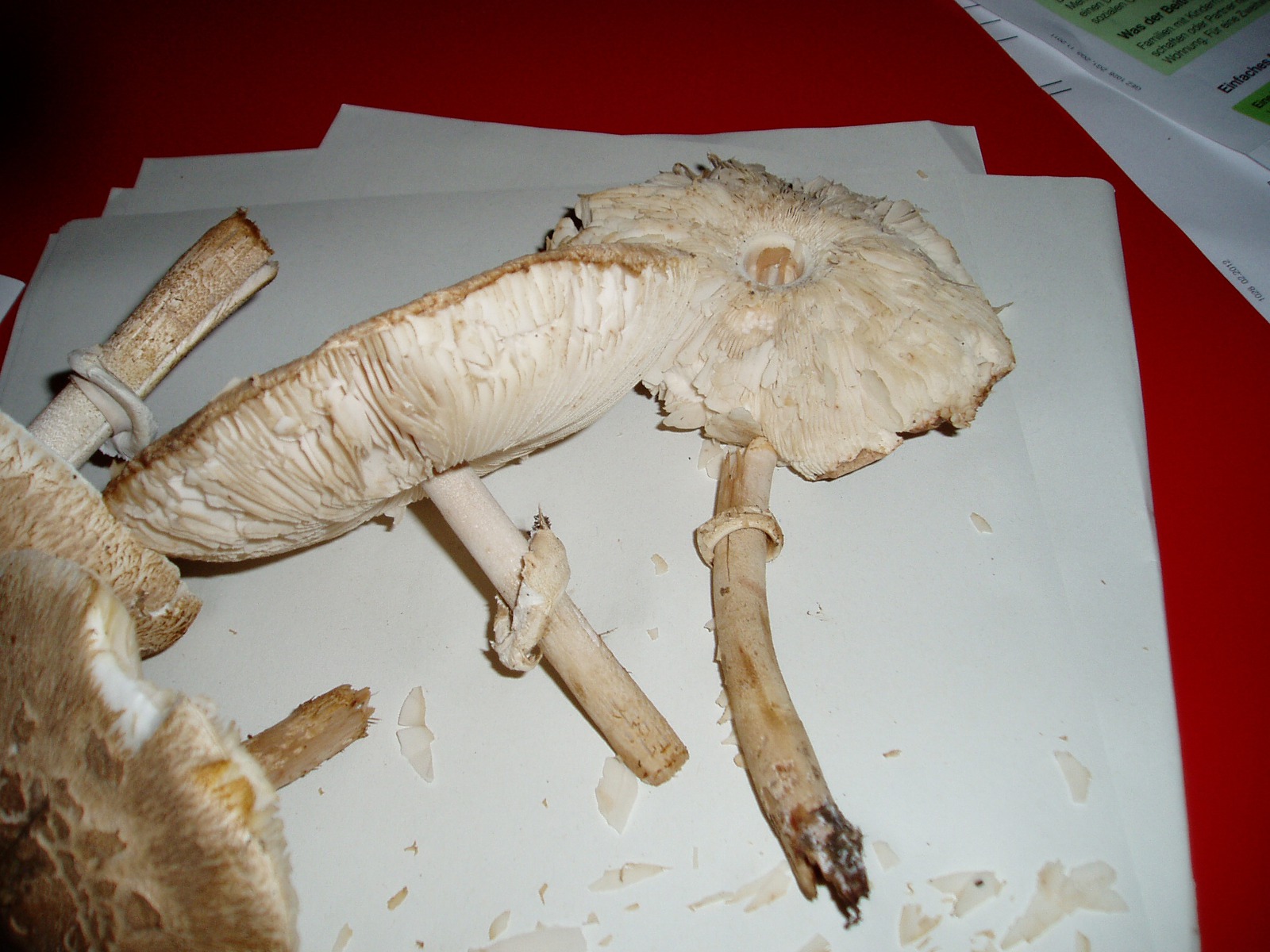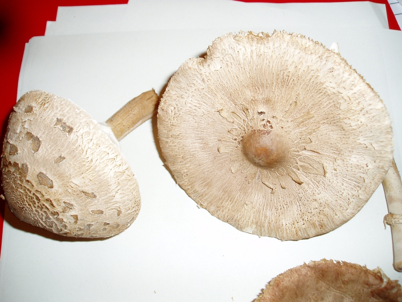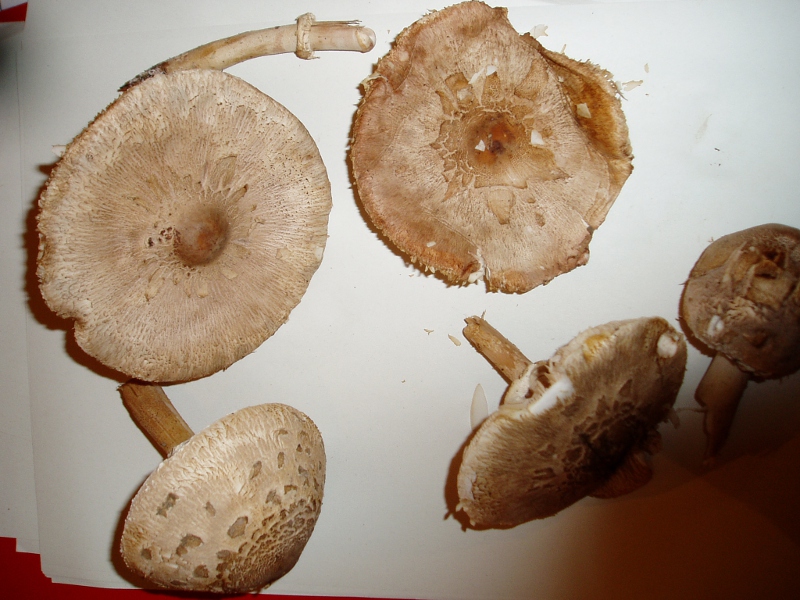 Die anderen gehören in die Gattung Macrolepiota. Mit M. mastoidea könntest du durchaus richtig liegen. M. konradii ist es jedenfalls nicht und für M. procera (Parasol) sind mir die Fk insgesamt zu schmächtig und der Stiel etwas zu wenig genattert.