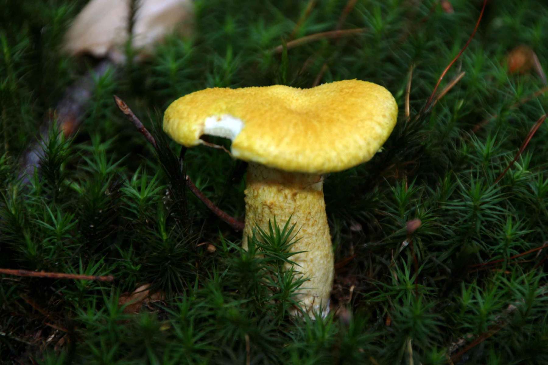 Diesen schönen, leuchtenden Pilz haben mentor1010 und ich auf unserer letzten Exkursion auch gefunden. Die üblich gefärbten Hohlfüsse wuchsen zuhauf, aber dieses leuchtende gelb sticht wirklich hervor