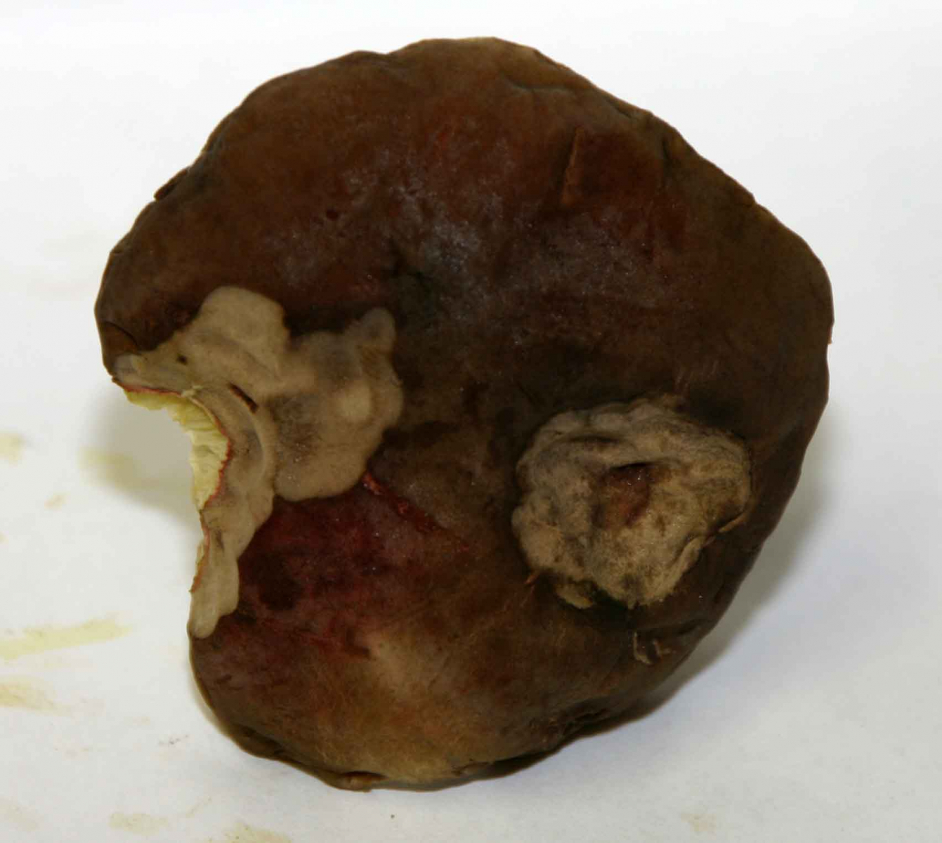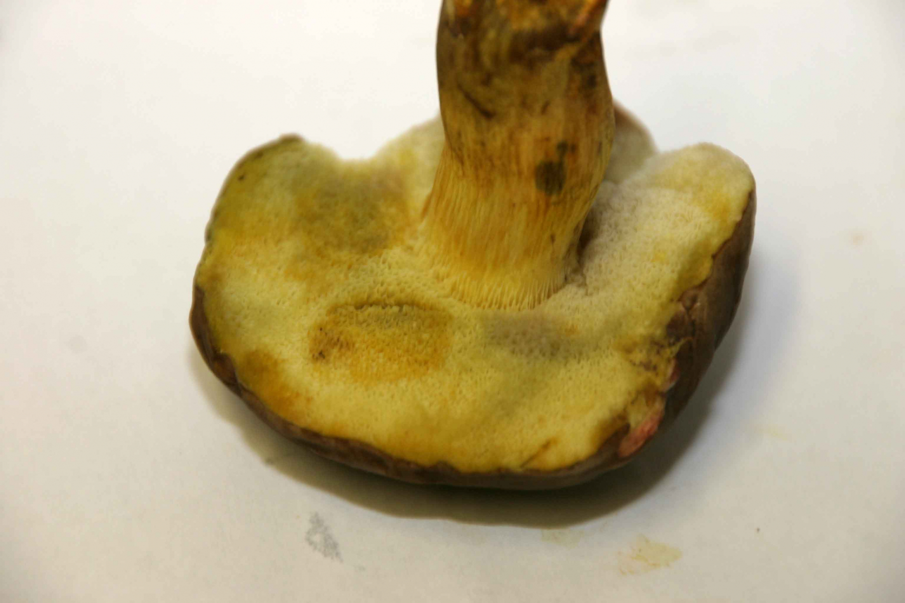 - Stielbasis im Schnitt reingelb, keine Rottöne erkennbarPruinatus hat keine Rottöne im Stiel. Dieses Merkmal weist vor allem chrysenteron auf.