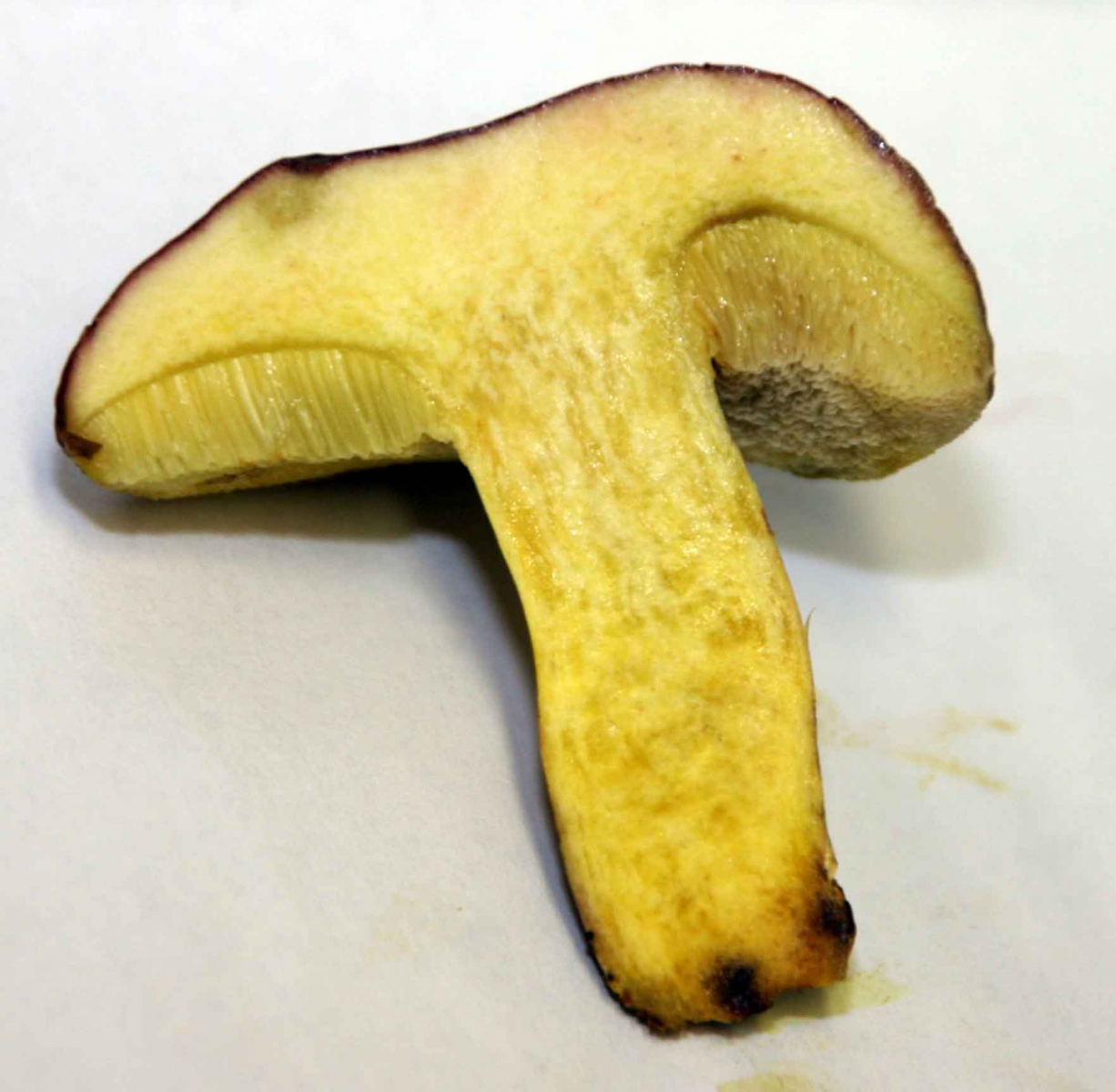 - keinerlei Verfärbung des Fleisches erkennbar.Freilich spricht das sehr gelbe Fleisch schon deutlich für X. Pruinatus.