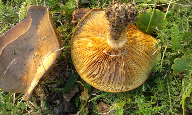 Karbolegerling, Agaricus Xanthoderma (s.lat.) ist für den weißen die einzige Alternative. Der dunkle Pilz gehört in die Kremplingsverwandschaft (Formenkreis Paxillus Involutus) und ist ebenfalls giftig.