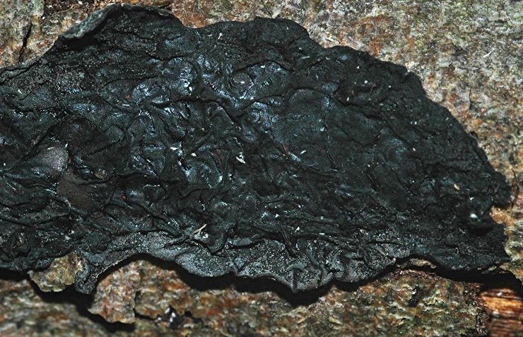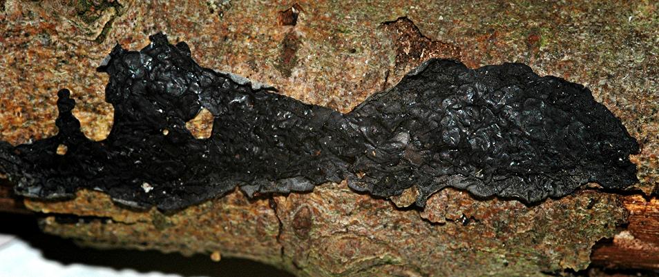 Exidia truncata (= glandulosa ss. Donk, Kreisel) = Abgestutzter Drüsling mit ihren meist stark abstehenden, nicht ganzflächig aufliegenden, oberseitig schwarzsamtigen Frkn. ist gut anzusprechen, wenn sie eben so wächst.