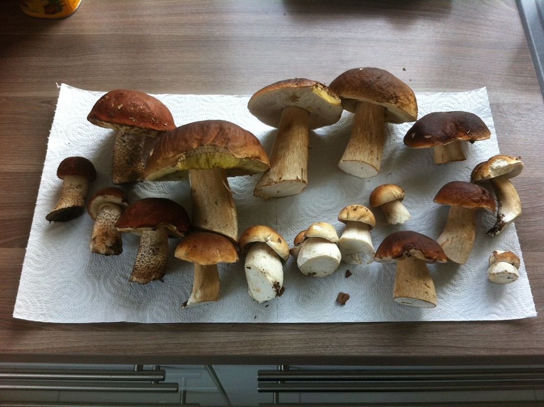 Ich hab heute eine schöne Ladung Steinpilze und Rotkappen gefunden (insg. 17 St., gab aber noch mehr).