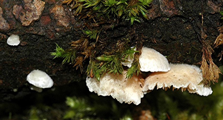 Ist höchstwahrscheinlich eine Crepidotus (Stummelfüßchen)-Art. Da geht ohne Mikroskop fast gar nichts, denn makroskopisch ähneln sich die Arten zu sehr (bis auf wenige Ausnahmen).