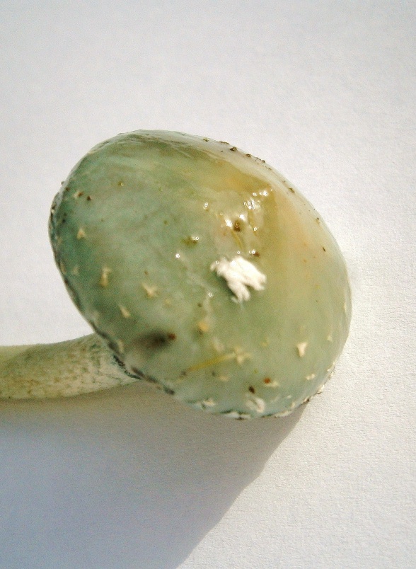 Hut: 3,5 cm Durchmesser, Oberfläche hellblau, im Zentrum grünlich,