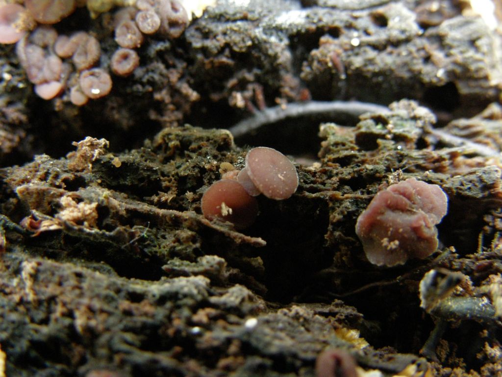 Meines Erachtens geht die Tendenz weg von Acocoryne sarcoides (Fleischroter Gallertbecher), denn die Becherform ist zu regelmäßig und der Braunton zu viel. Ohne Mikro zunächst Ascocoryne spec.