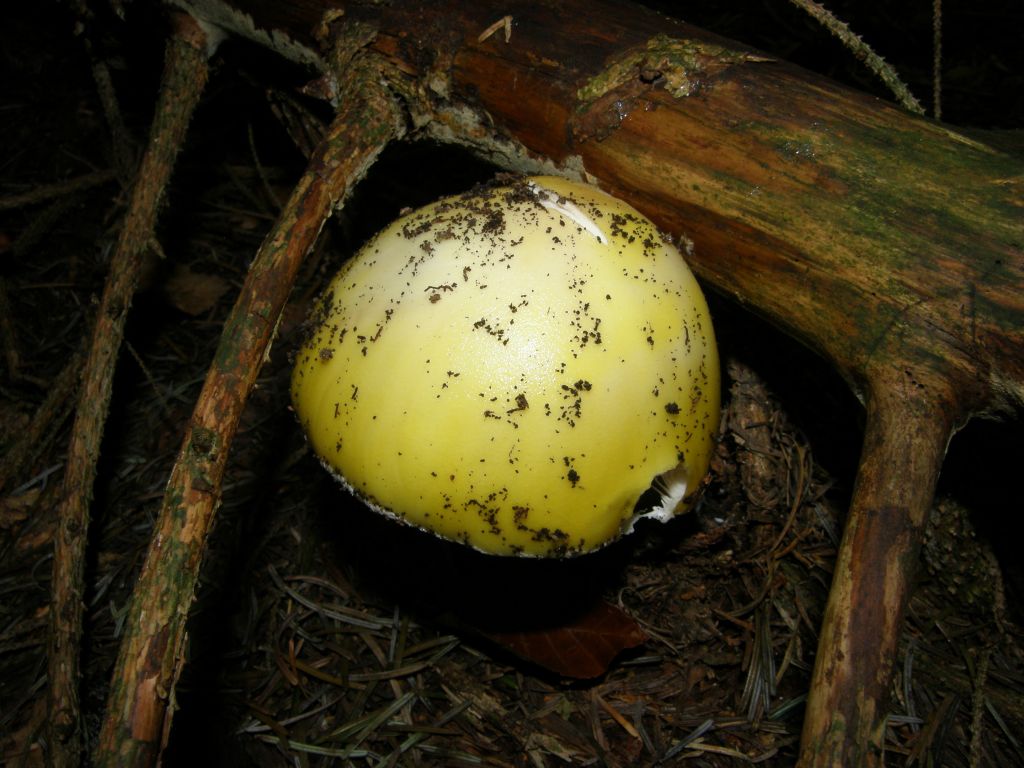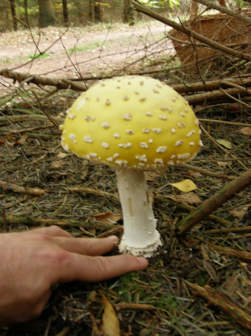 Fundort: Odenwald, unter jüngeren Fichten direkt an einem Waldweg. Das ganze Waldstück stand voll mit "normalen" Fliegenpilzen, aus denen die insgesamt fünf komplett gelben Exemplare richtig herausstrahlten. Fundhöhe: Etwa 400m üNN.