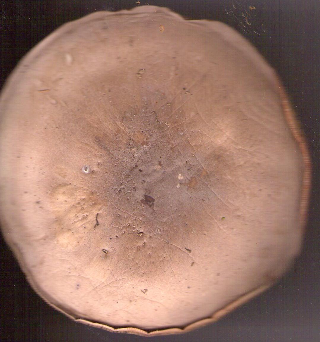 Verhältnismäßig flach, In der Mitte "Platingrau", nach außen heller,