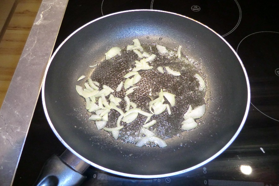Die Zwiebeln schwitzen daraufhin kurz in der Pfanne: