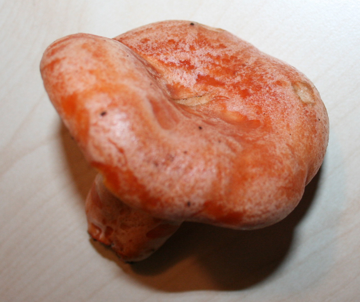 - Beschaffenheit des Hutes (schmierig, trocken, glatt, rau, etc.)- glatt, trocken, knalliges Orange/Lachsfarbe