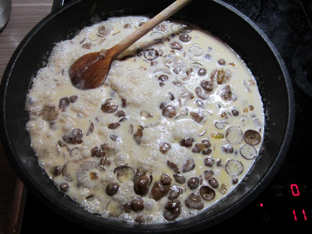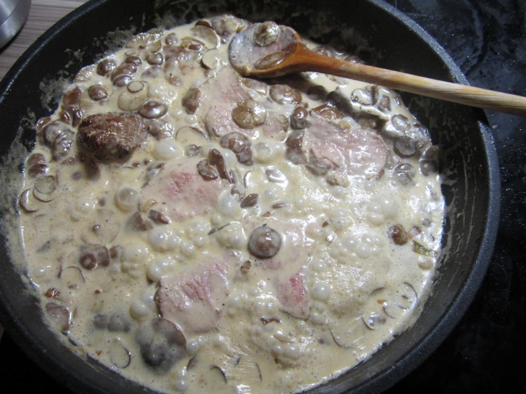 Hauptspeise: Stockschwämmchen in Rahmsoße mit Schweinelende