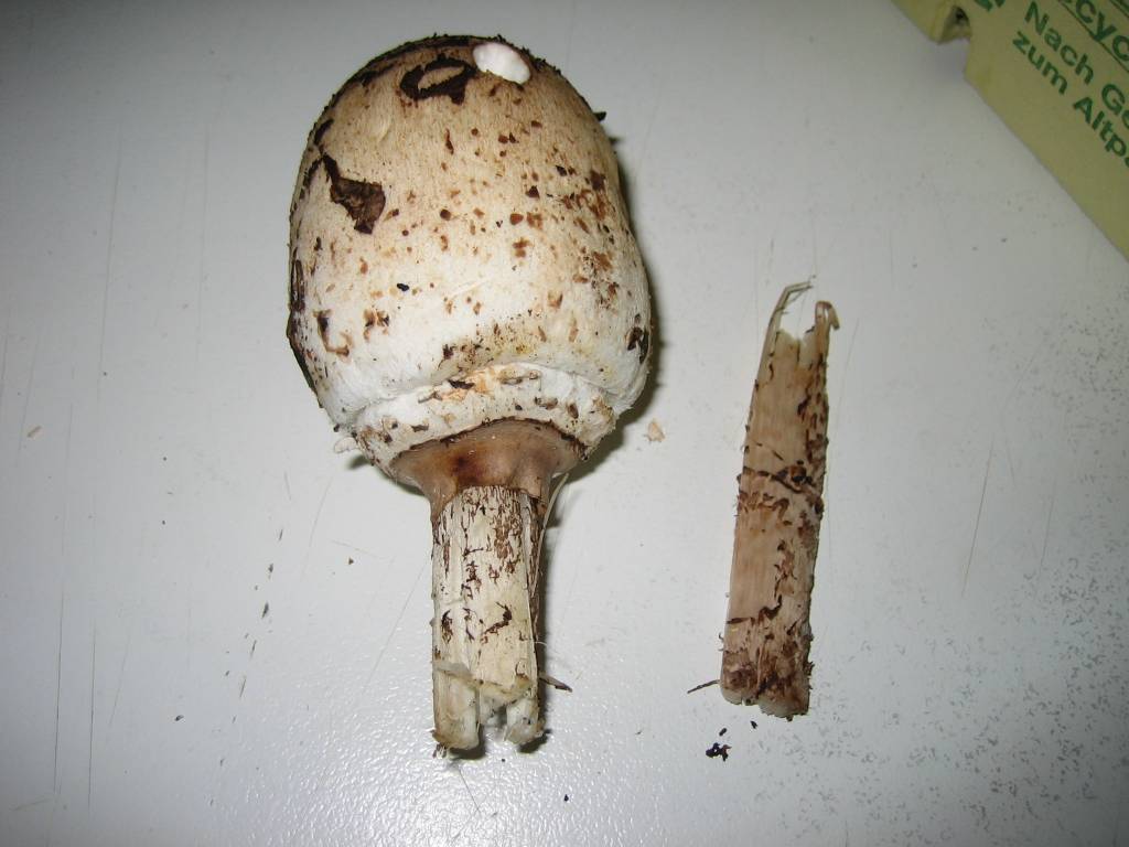 • Danke fuer die Infos, habe beim Zerschneiden des Hutes dann auch die klare Natterung an der Stielspitze gesehen, war also garantiert ein Parasol. Ausserdem war der Hutrand nicht am Stil verwachsen sondern frei bewegbar, ich glaube das ist soundso ein klares Merkmal fuer essbare Riesenschirmlinge, oder gibt es auch giftige mit diesem Merkmal ?