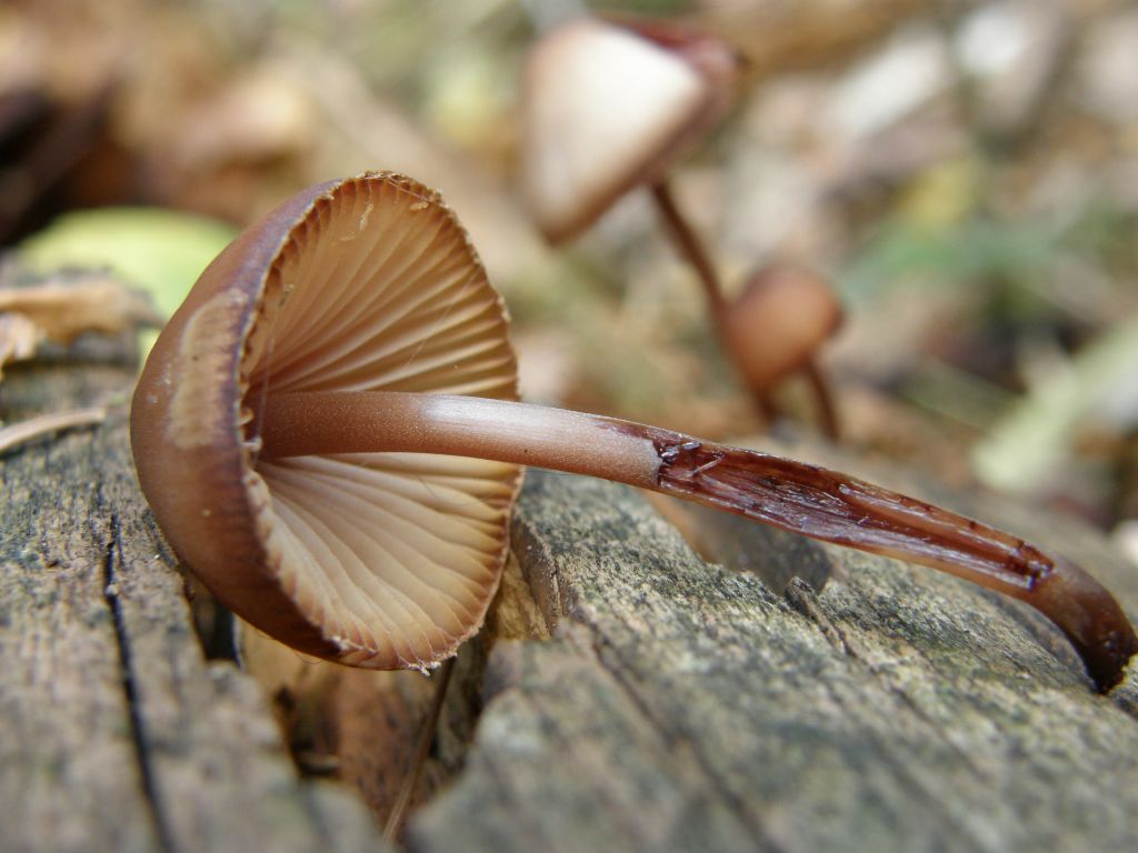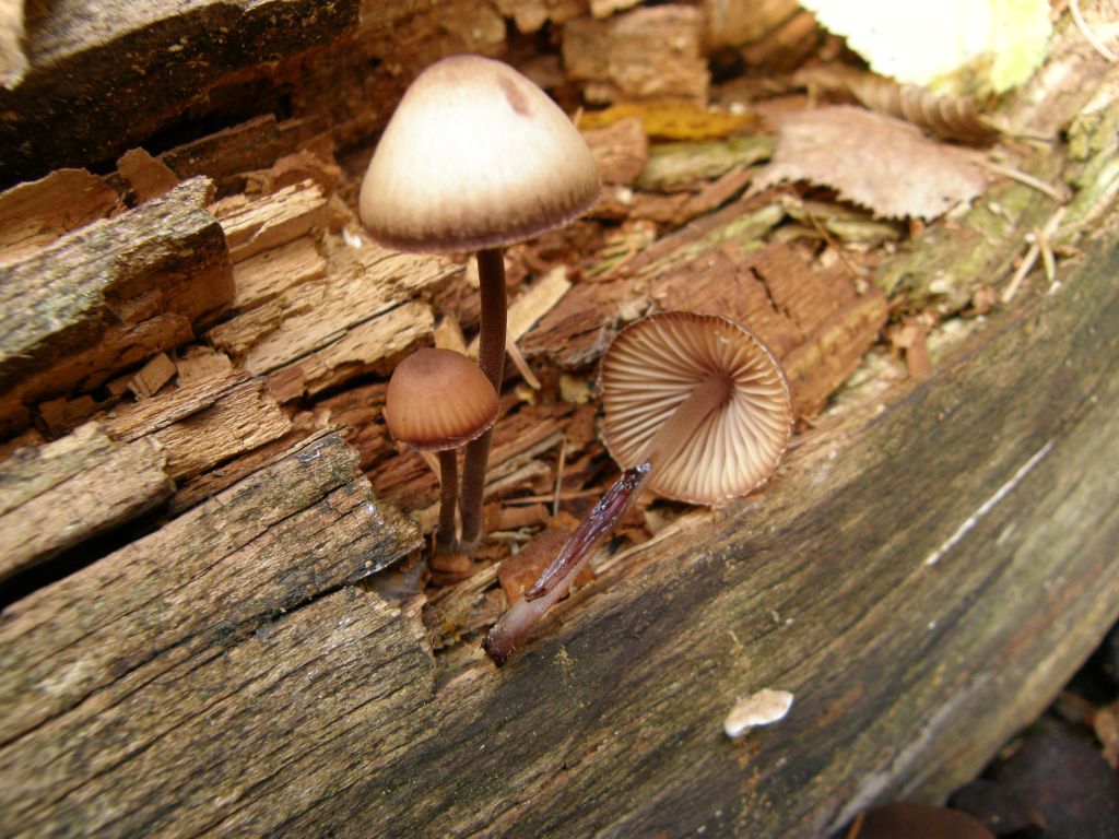 Einen letzten Pilz habe ich noch, der mich necken will. Ich würde den ja gerne mit Mycena Haematopus, Blutmilchhelmling ansprechen. Aber sollte der zum Hutrand hin nicht heller anstatt dunkler sein? Und sollte der nicht auf Laubholz wachsen? Nach "Ralfs kleiner Totholzkunde" >Nachzulesen hier< ist das hier Nadelholz. :/