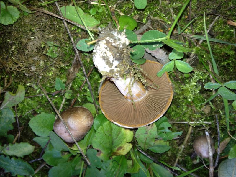 • Also ich seh mindestens auf dem ersten Foto einen Fälbling, Hebeloma crustuliniforme s.l. und auf sämtlichen anderen Fotos einen Schleierling aus der Dickfußgruppe (Cortinarius UGatt. Sericeocybe). Eventuell käme auch ein dicker Gürtelfuß in Frage, es gibt da einige Übergänge zu Sericeocybe. Welcher von denen es aber ist, kann ich dir so auf die Schnelle leider nicht sagen.