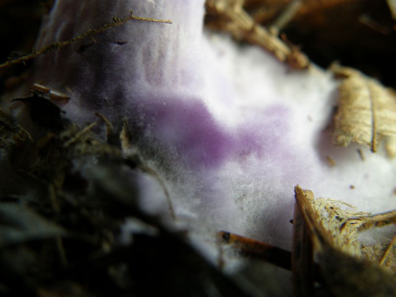 Zweifarbiger Lacktrichterling (Laccaria bicolor) mit lila Mycelfilz!