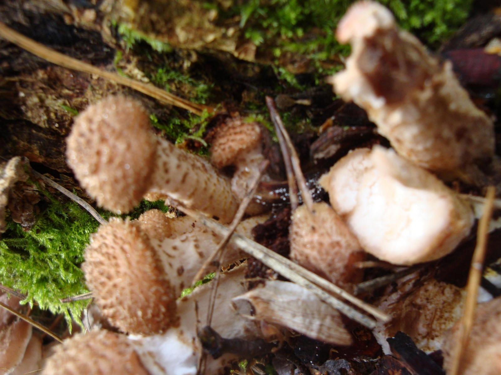 Mischwald (Kiefern, Eichen, Birken), wuchsen an einem toten Kiefernstamm, Schnitt unauffällig, Stiele der mitgenommenen Exemplare 3-10 cm, hüte 1-5 (offen) cm, Hut-Schuppen lassen sich leicht abreiben...