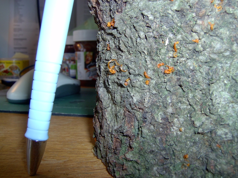 Ich kann auch gar nicht beschreiben, wie der Pilz war, als der Baum noch stand. Er macht jetzt auf jeden Fall einen sehr trockenen Zustand. Also diese gedrehten Parts lassen sich nicht entdrehen, oder wie man das auch immer beschreiben mag.