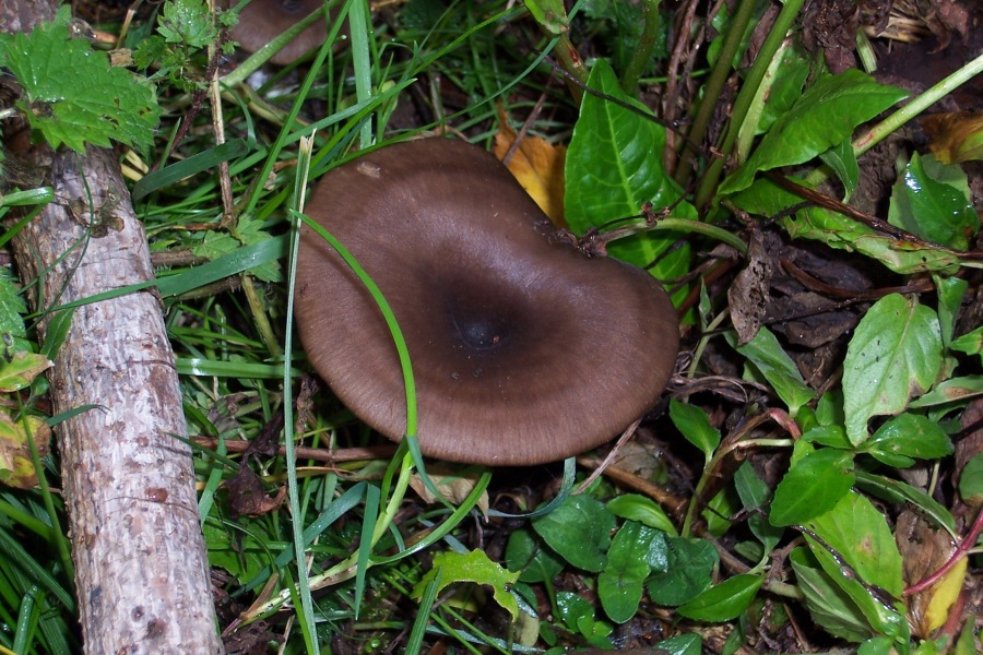 Weitere Pilze unmittelbar daneben: Nebelgrauer Trichterling (Lepista nebularis) und Violetter Rötelritterling (Lepista nuda).