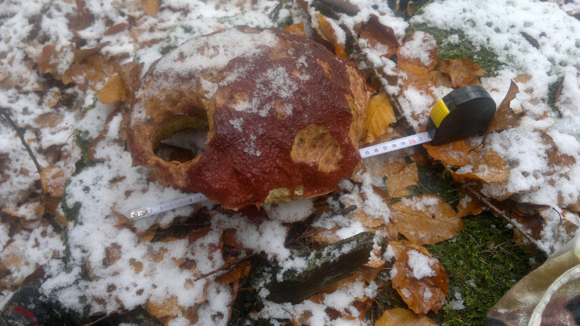 Grenzwertige Steinis mit festem Stiel und gefrohrenem Hut, da werde ich die Druckprüfung nach dem auftauen machen.