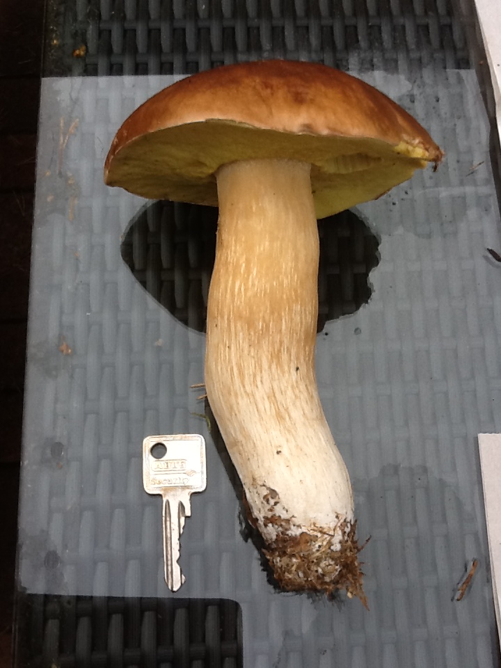 Hier ist ein herrliches Exemplar, bin eben nicht sicher, ob das ein "Braunkappe" Röhrling od. ein Steini ist...