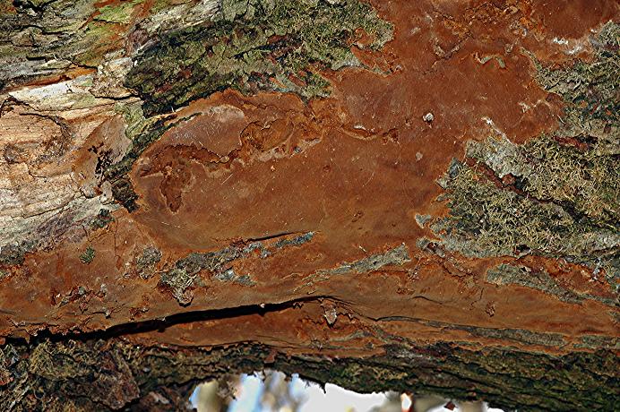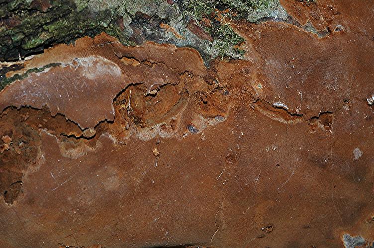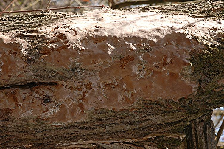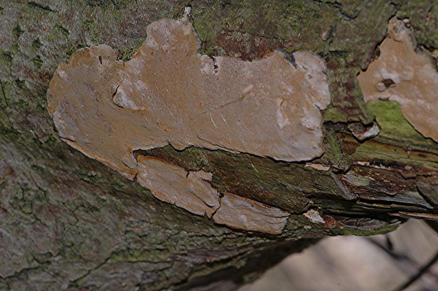 Am 29.03.2008 fand ich diesen resupinat wachsenden Pilz in einem Wäldchen des Steinbruchs Weiler zum Stein an Weide. Neben Weide wächst dort überwiegend Robinie und vereinzelt Kirsche. Auffällig war, daß ich ihn nur an Weiden gefunden habe.