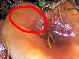 Geschmack: fade (evtl. wegen Frost + Schnee in der Nacht). Nach Ausspucken nach einiger Zeit ganz ganz leicht scharf.