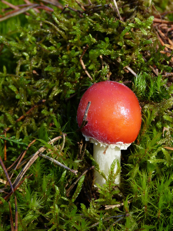 ich habe vor drei Tagen in der Göhrde diesen schönen, jungen Pilz entdeckt. Gestern war ich noch einmal dort und habe ein zweites Foto geschossen. Handelt es sich hier um einen Fliegenpilz, dem aus welchen Gründen auch immer die Punkte abhanden gekommen sind?