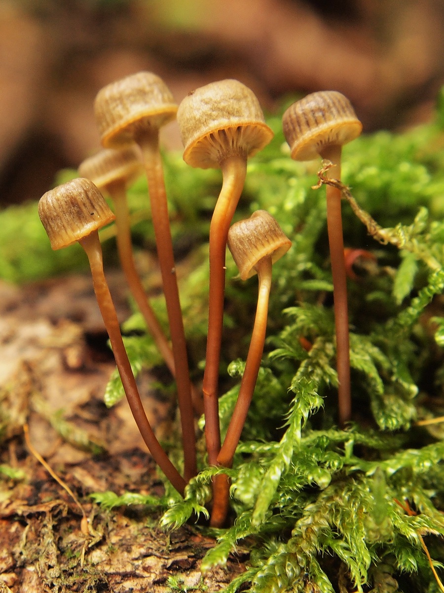 Das war an einer sehr feuchten Böschung am Laubwaldrand. Am Moos kann man gut sehen, wie klein sie sind, man kann sie ziemlich schnell übersehen. Mir waren sie gar nicht selbst aufgefallen, ein lieber Pilzfreund hatte sie zuerst gesehen. Moorig war es dort allerdings nicht. Sie wuchsen scheinbar ab Boden. Ich kann aber altes Laub nicht ausschließen. In der Literatur steht, dass sie auch auf nassem, verrottetem Holz wachsen können.
