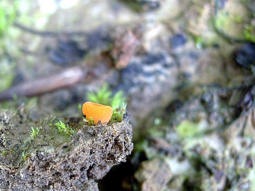 das könnte als erwachsen Aleuria aurantia werden, könnte aber auch ganz was anderes sein, ohne mikro ist da nichts zu machen.