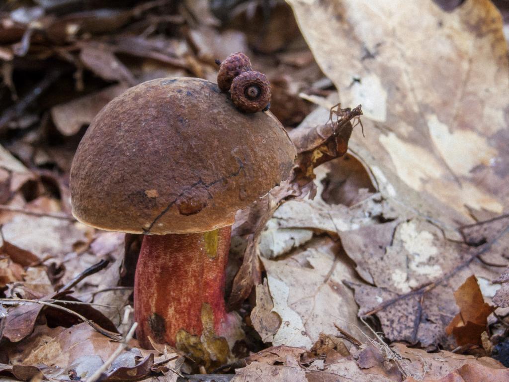 Und dann dieser Schwindling, der einen Pfifferling als Krücke nutzt