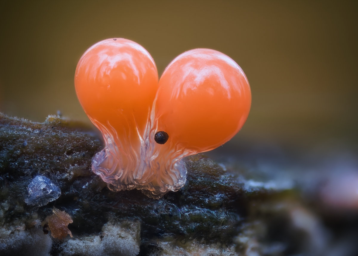 Heute habe ich (zum zweiten Mal) kugelförmige glänzende Schleimpilze fotografiert. Beim ersten Mal ging das voll in die Hose, weil ich die Reflexionen in den Schleimpilzen von oben (eigentlich von überall) total unterschätzt habe. Das Bild war für die Tonne. Heute habe ich über den Pilzen ein weiß durchscheinendes Vlies angebracht, um dieses Problem zu lindern. Bei größeren Pilzen arbeite ich mit Regenschirm und Polfilter, um ein gleichmäßiges diffuses Licht zu erzeugen und Reflexionen zu vermeiden. Das führt natürlich zu langen Belichtungszeiten, mehrere Sekunden sind bei mir keine Seltenheit.