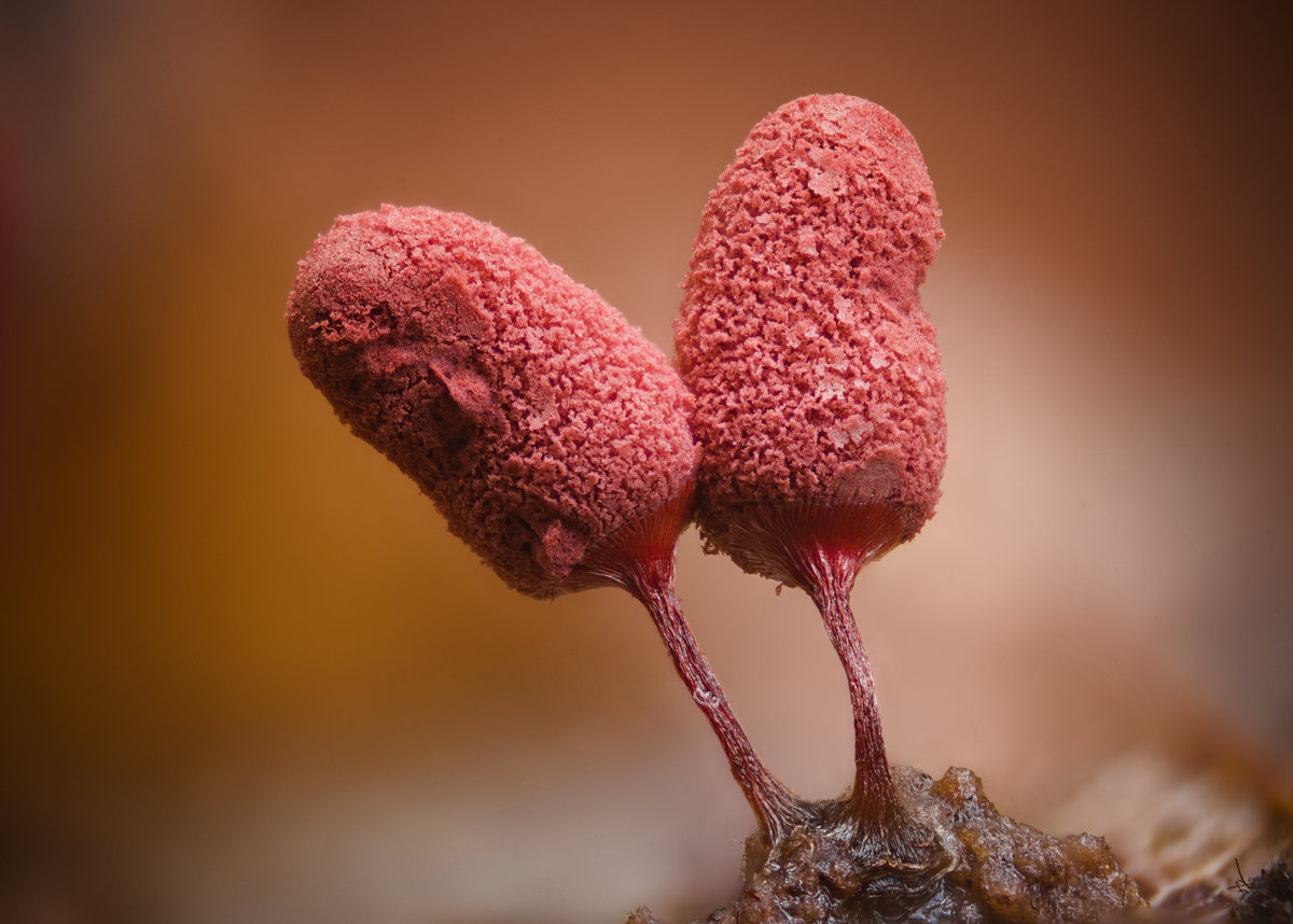 Heute habe ich (zum zweiten Mal) kugelförmige glänzende Schleimpilze fotografiert. Beim ersten Mal ging das voll in die Hose, weil ich die Reflexionen in den Schleimpilzen von oben (eigentlich von überall) total unterschätzt habe. Das Bild war für die Tonne. Heute habe ich über den Pilzen ein weiß durchscheinendes Vlies angebracht, um dieses Problem zu lindern. Bei größeren Pilzen arbeite ich mit Regenschirm und Polfilter, um ein gleichmäßiges diffuses Licht zu erzeugen und Reflexionen zu vermeiden. Das führt natürlich zu langen Belichtungszeiten, mehrere Sekunden sind bei mir keine Seltenheit.