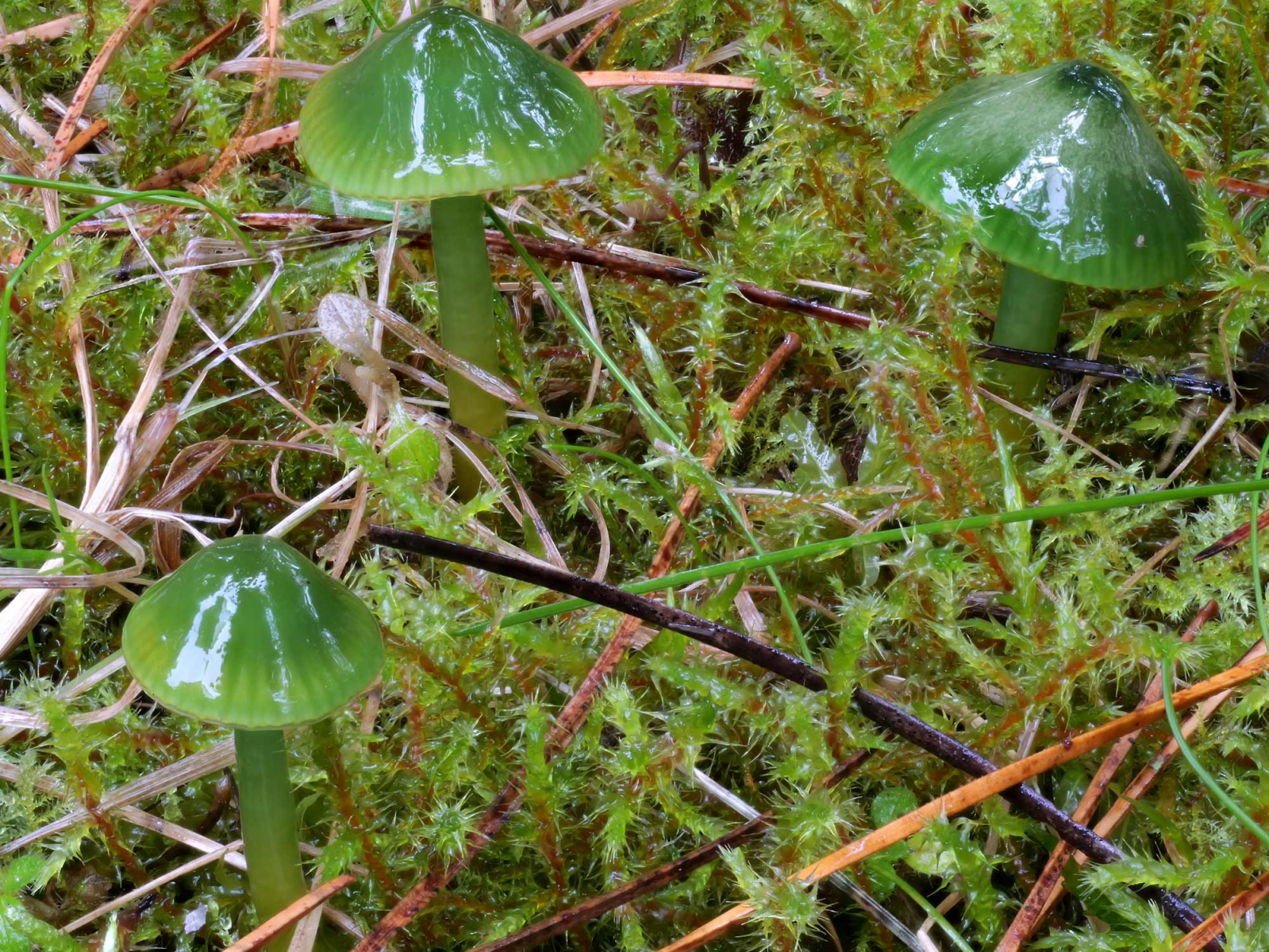 Das war an einer sehr feuchten Böschung am Laubwaldrand. Am Moos kann man gut sehen, wie klein sie sind, man kann sie ziemlich schnell übersehen. Mir waren sie gar nicht selbst aufgefallen, ein lieber Pilzfreund hatte sie zuerst gesehen. Moorig war es dort allerdings nicht. Sie wuchsen scheinbar ab Boden. Ich kann aber altes Laub nicht ausschließen. In der Literatur steht, dass sie auch auf nassem, verrottetem Holz wachsen können.