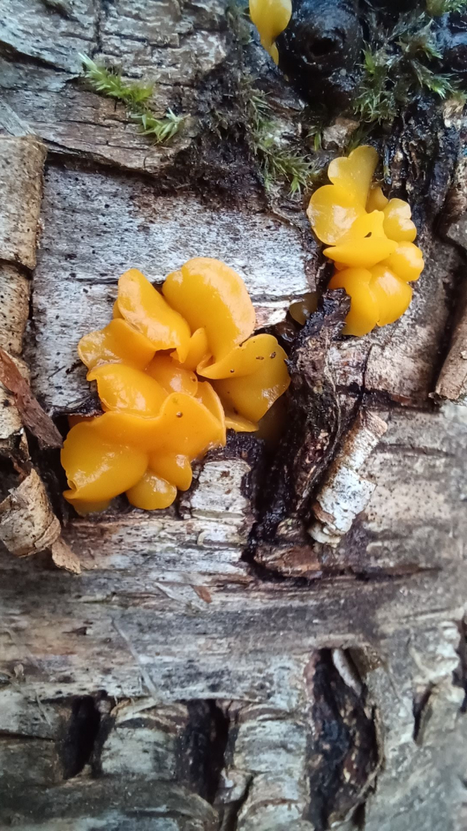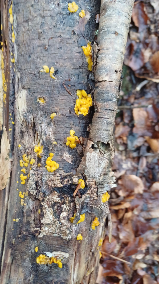 Hallo Südwald , ja, zu den herrlichen gelben "Pilz-Scheibchen" ohne Lamellen etc., habe ich keine Idee zur Benamsung. Vielleicht eine Art oder Fruchform von Gallerttränen ???