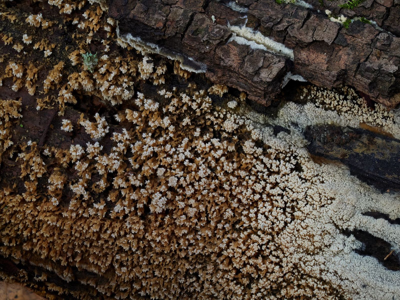 und einem Prachtexemplar Gallertfleischiger Fältling (Phlebia tremellosa):