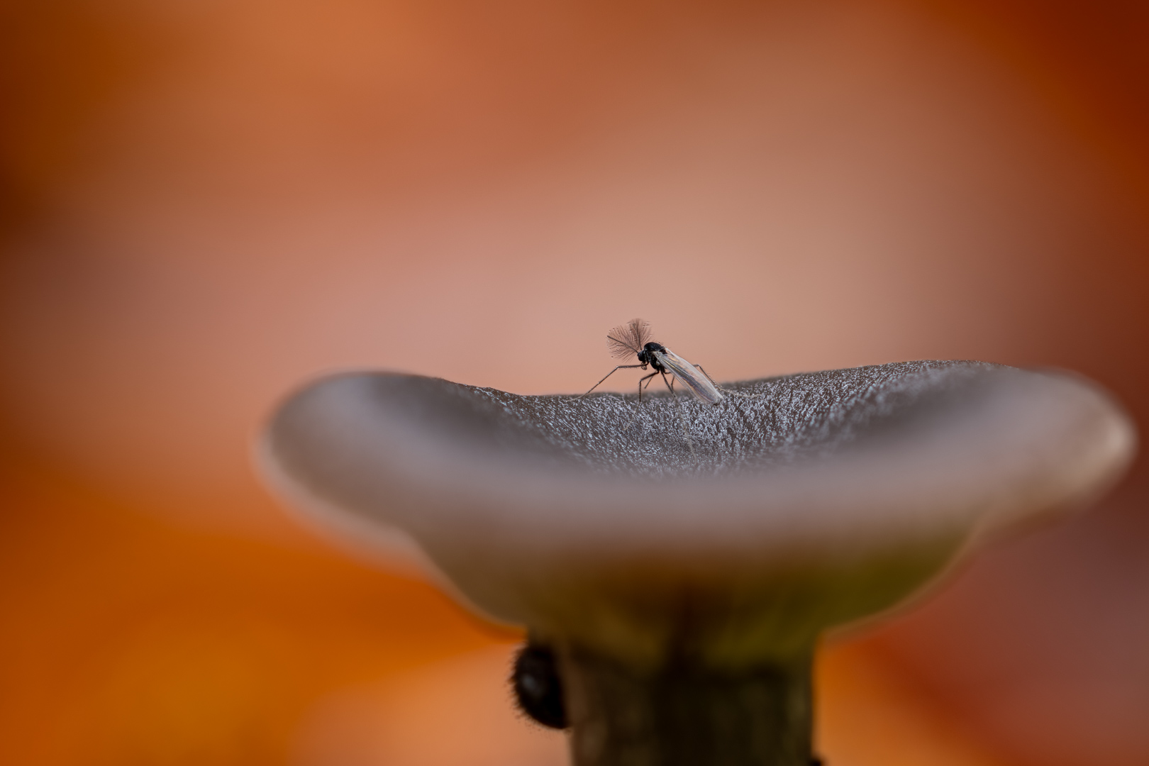 Kompliment für diese Köcherfliege auf dem Trichterling!